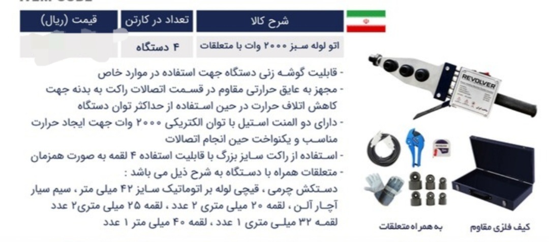 اتو لوله سبز صنعتی 2000 وات با متعلقات ریولور مدل RS-2000K