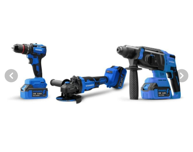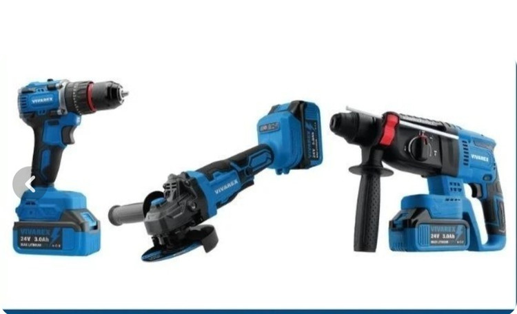 ۲ عدد باطری ۱ عدد مینی فرز شارژی ۱ عدد بتن کن شارژی ۱ عدد دربل شارژی