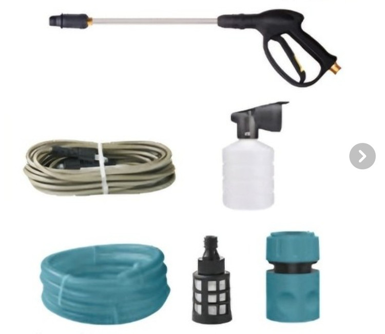 دارای گان، شلنگ فشار قوی، لنس ، مخزن کف پاش ، شلنگ ورودی و دو عدد اتصالات ورودی و یک عدد فیلتر بزرگ